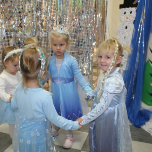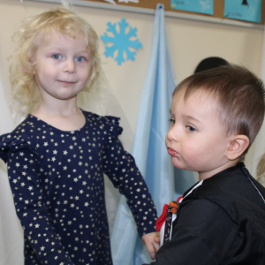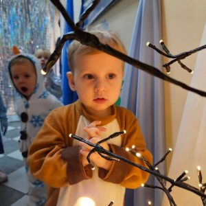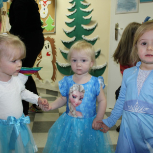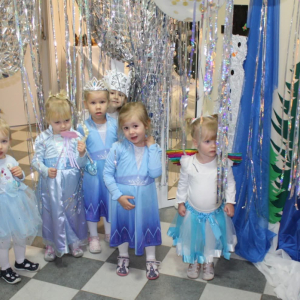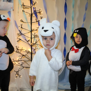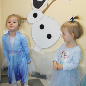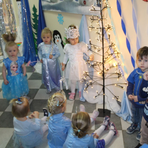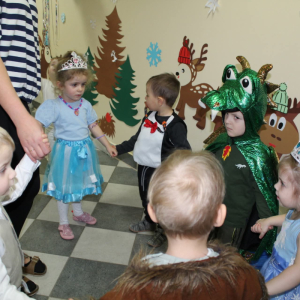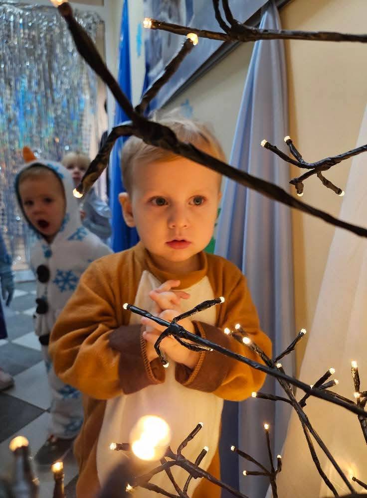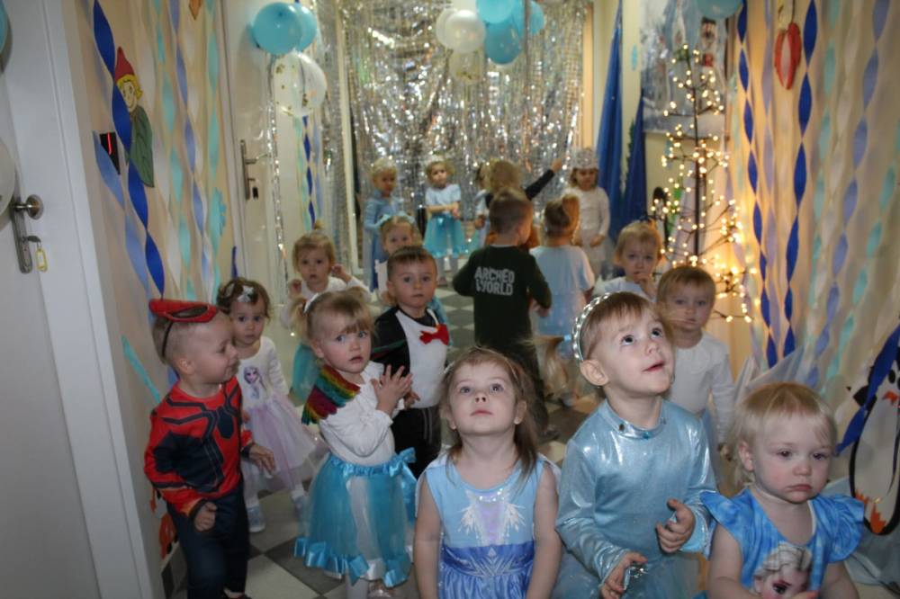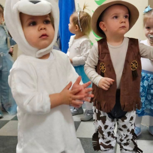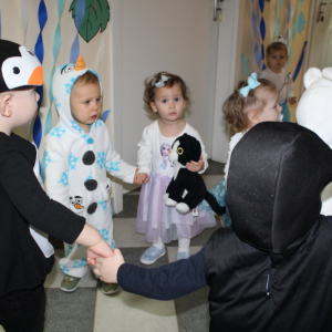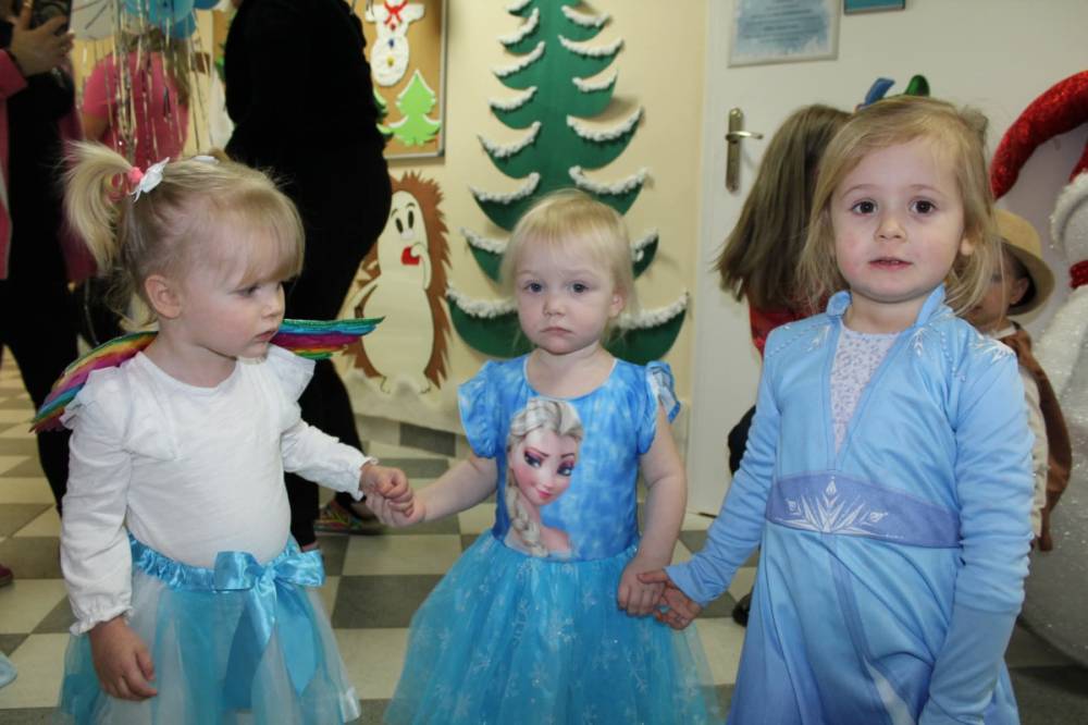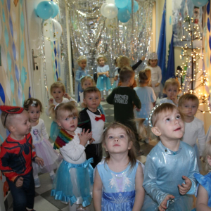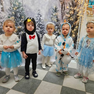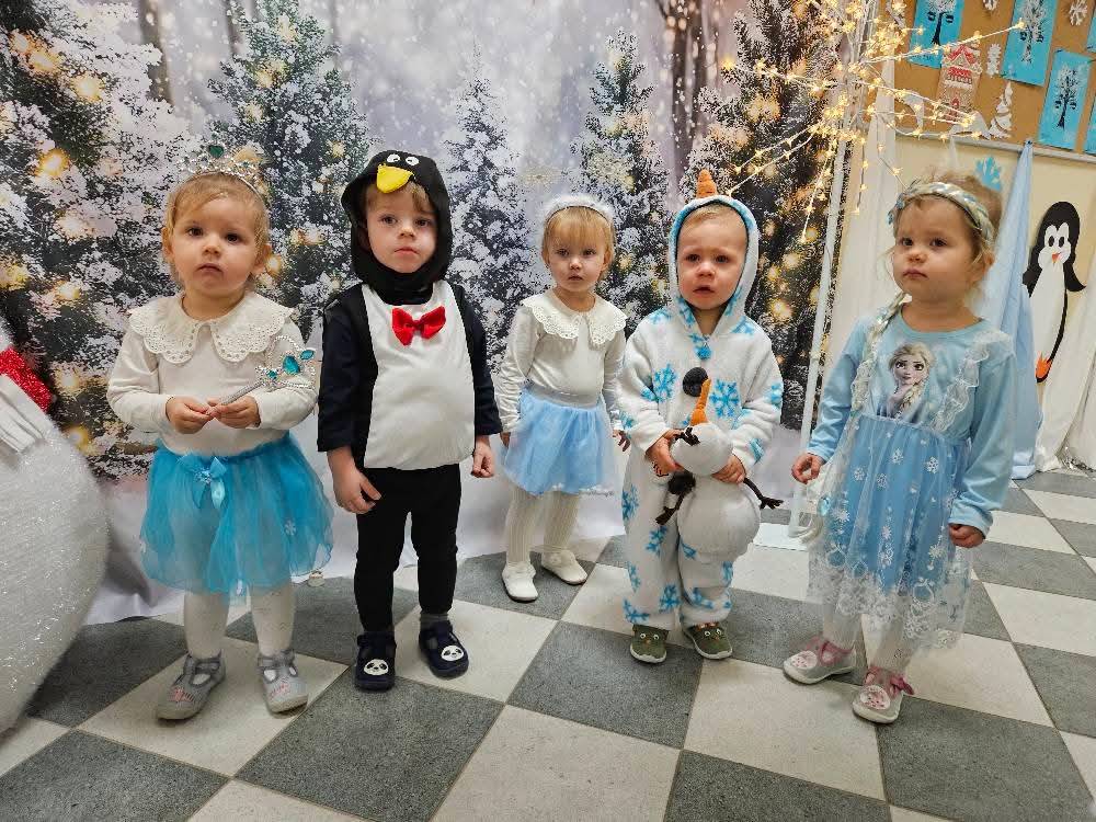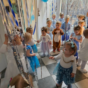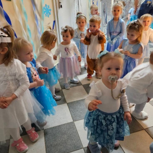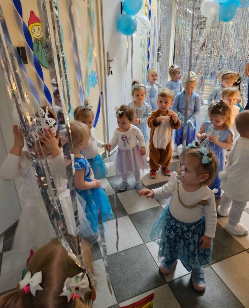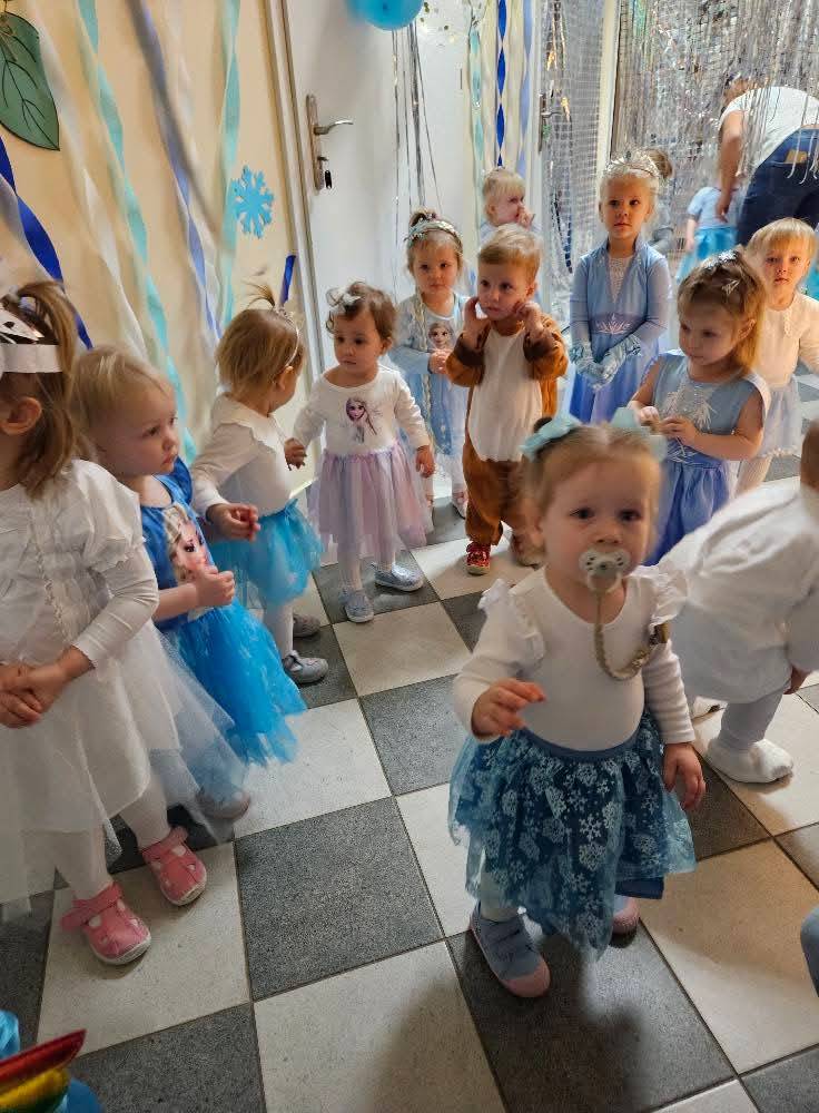 W naszym żłobku odbył się radosny bal karnawałowy pod hasłem „W Krainie Zimy”. Tego dnia żłobek wypełnił się wyjątkową, bajkową atmosferą, a zimowa sceneria przeniosła wszystkich do świata śniegu, lodowych pałaców i wirujących płatków śniegu. Żłobek zostały pięknie udekorowany– pojawiły się błyszczące śnieżynki, zimowe pejzaże, bałwanki oraz delikatne, srebrno-niebieskie ozdoby, które stworzyły magiczny klimat. W takiej oprawie dzieci mogły w pełni poczuć karnawałową radość. Najmłodsi zachwycili kreatywnymi strojami. Wśród nich nie zabrakło księżniczek, bohaterów bajek, zwierzątek, śnieżynek czy małych bałwanków. Każde dziecko z dumą prezentowało swój kostium, a wspólne zdjęcia stały się piękną pamiątką tego dnia. Bal obfitował w wesołe tańce, zabawy ruchowe oraz integracyjne gry prowadzone przez opiekunów. Radosna muzyka i wspólna zabawa sprawiły, że był to dzień pełen uśmiechu, pozytywnej energii i dziecięcej beztroski. To wyjątkowe wydarzenie na długo pozostanie w pamięci naszych najmłodszych oraz całej społeczności żłobka.
