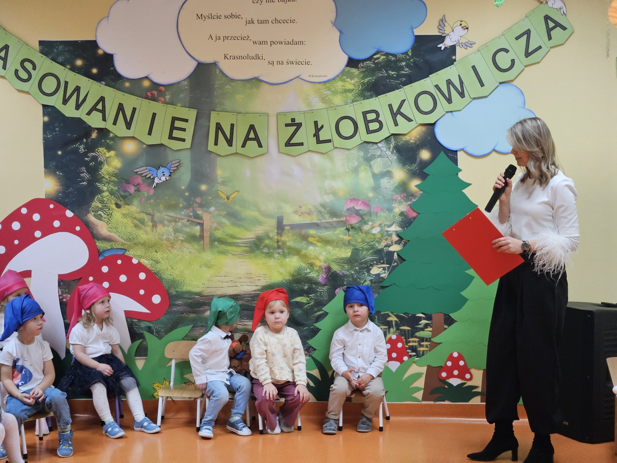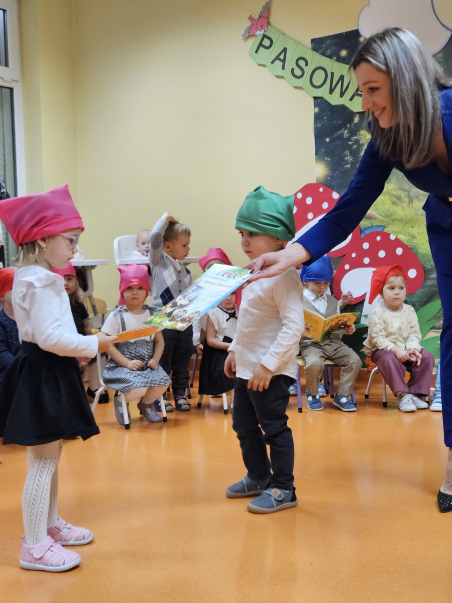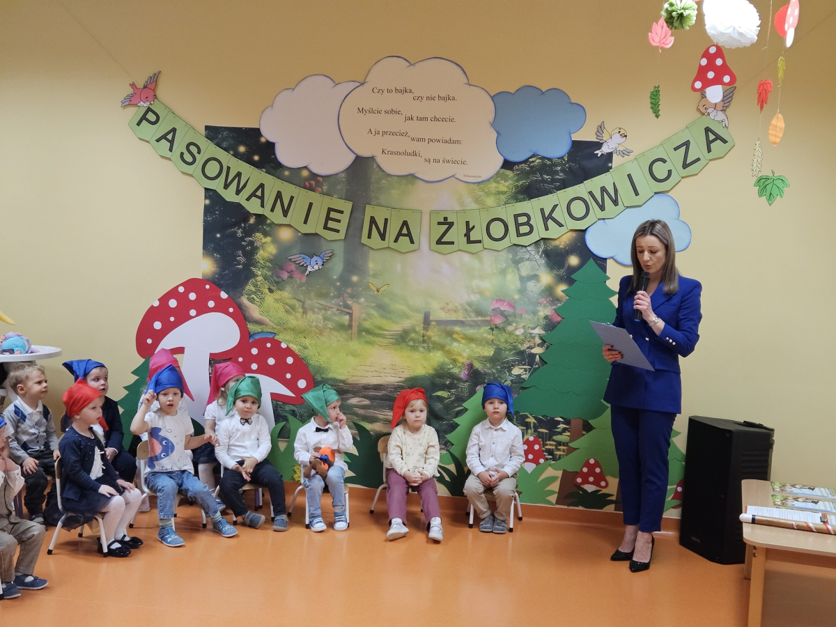 W środę, 3 grudnia w naszym żłobku odbyła się wyjątkowa uroczystość - pasowanie dzieci na Żłobkowiczów połączone z obchodami 10-lecia działalności placówki. Był to dzień pełen radości, wzruszeń i dumy, zarówno dla dzieci, jak i całego zespołu. Uroczystość rozpoczęła się częścią artystyczną przygotowaną specjalnie na tę okazję. Dzieci z ogromnym zaangażowaniem zaśpiewały piosenkę "Krasnoludki", wywołując uśmiech i wzruszenie wśród zgromadzonych gości. Nie zabrakło wesołych zagadek, które sprawiły maluchom wiele radości i pozwoliły im aktywnie uczestniczyć w wydarzeniu. Najważniejszym momentem było uroczyste pasowanie, podczas którego każde dziecko zostało symbolicznie przyjęte do grona Żłobkowiczów poprzez dotknięcie ramienia specjalnym "ołówkiem pasowania".