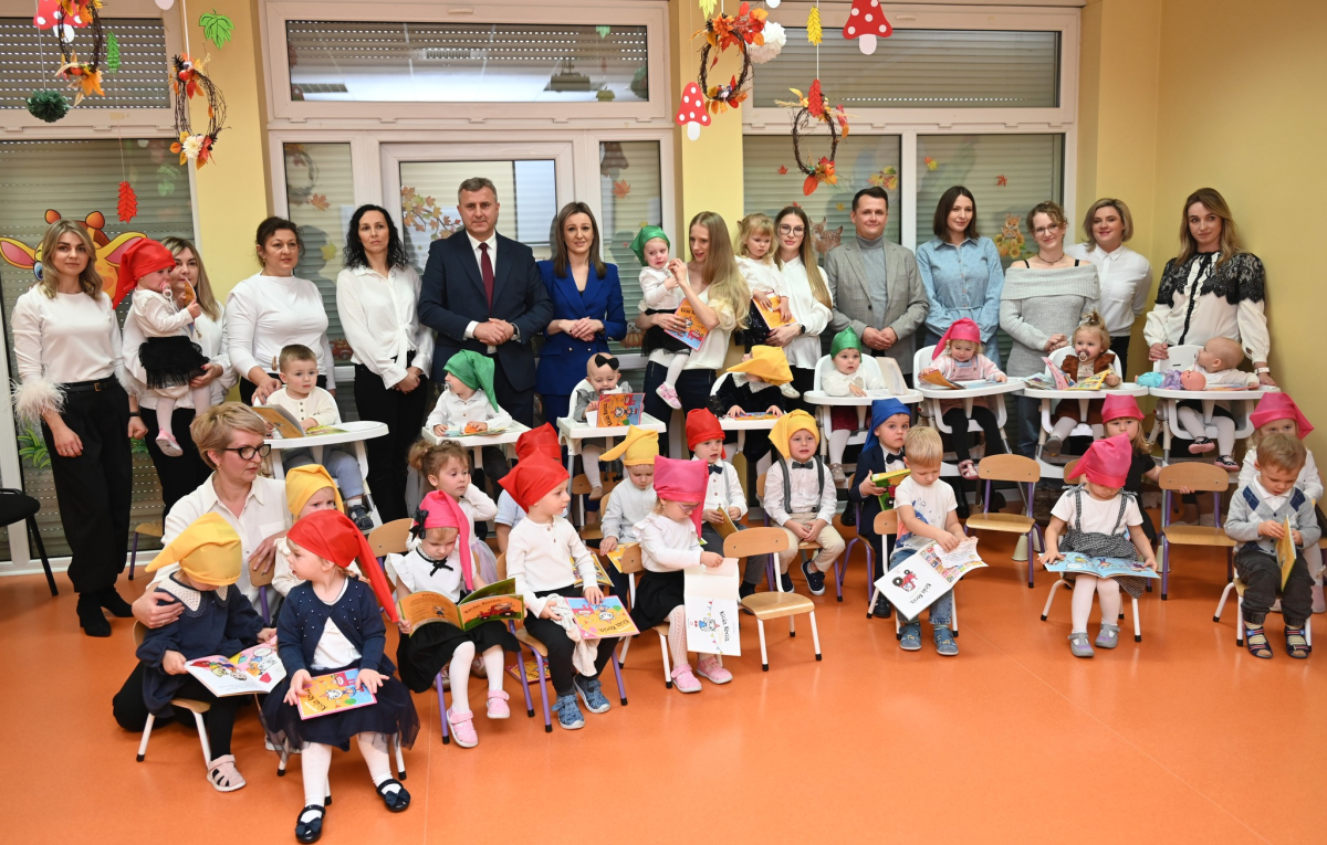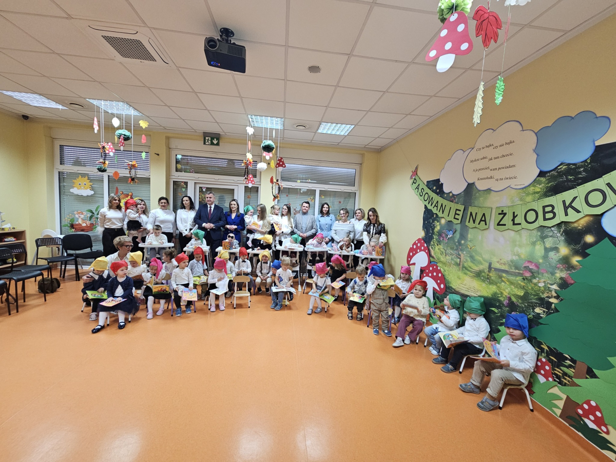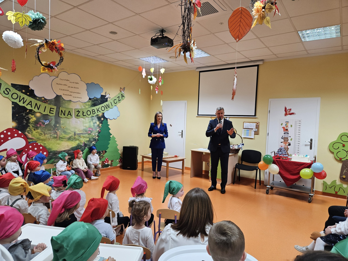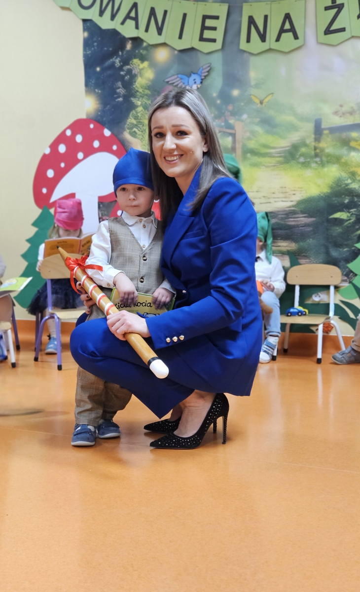 W środę, 3 grudnia w naszym żłobku odbyła się wyjątkowa uroczystość - pasowanie dzieci na Żłobkowiczów połączone z obchodami 10-lecia działalności placówki. Był to dzień pełen radości, wzruszeń i dumy, zarówno dla dzieci, jak i całego zespołu. Uroczystość rozpoczęła się częścią artystyczną przygotowaną specjalnie na tę okazję. Dzieci z ogromnym zaangażowaniem zaśpiewały piosenkę "Krasnoludki", wywołując uśmiech i wzruszenie wśród zgromadzonych gości. Nie zabrakło wesołych zagadek, które sprawiły maluchom wiele radości i pozwoliły im aktywnie uczestniczyć w wydarzeniu. Najważniejszym momentem było uroczyste pasowanie, podczas którego każde dziecko zostało symbolicznie przyjęte do grona Żłobkowiczów poprzez dotknięcie ramienia specjalnym "ołówkiem pasowania".